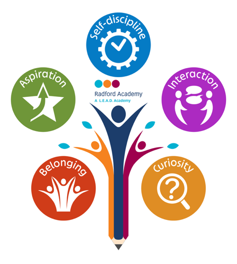 At Radford Academy, we place relationships at the heart of what we do. We ensure everyone feels a true sense of belonging. Through a carefully planned and sequenced curriculum and enrichment opportunities, we help grow curious minds to aspire, be self-disciplined and develop character. Together, we equip our pupils to flourish academically and socially – empowering through positive interactions, broadening their horizons and preparing them to thrive in the modern world.